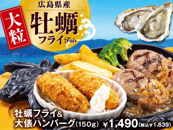 ビッグボーイジャパン、「ビッグボーイ」「ヴィクトリアステーション」で大粒の広島県産牡蠣使用の「牡蠣フライフェア」を開催