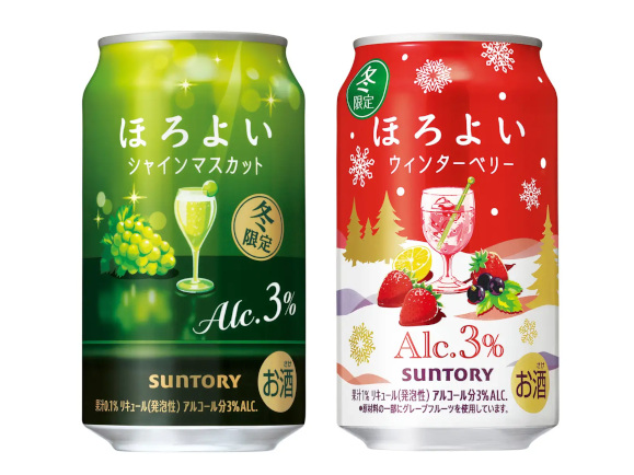 サントリー、アルコール度数3%のお酒「ほろよい〈シャインマスカット〉」「同〈ウィンターベリー〉」を期間限定発売