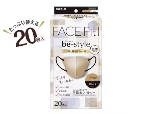 白元アース、バイカラータイプのマスク「ビースタイル 立体タイプ ふつうサイズ ベージュ×ブラック 20枚入」を限定発売