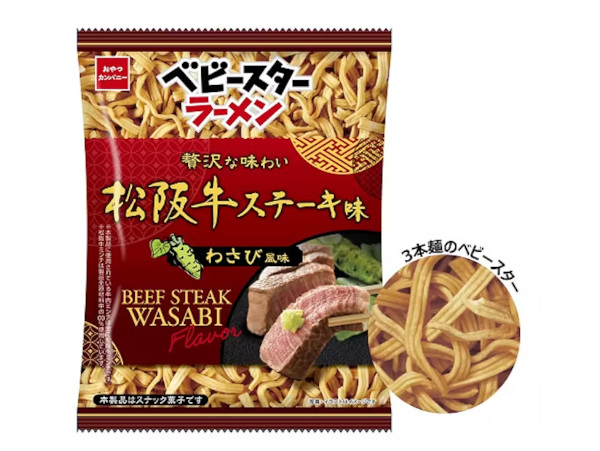 おやつカンパニー、「ベビースターラーメン(松阪牛ステーキ味わさび風味)」をファミリーマートで期間限定発売