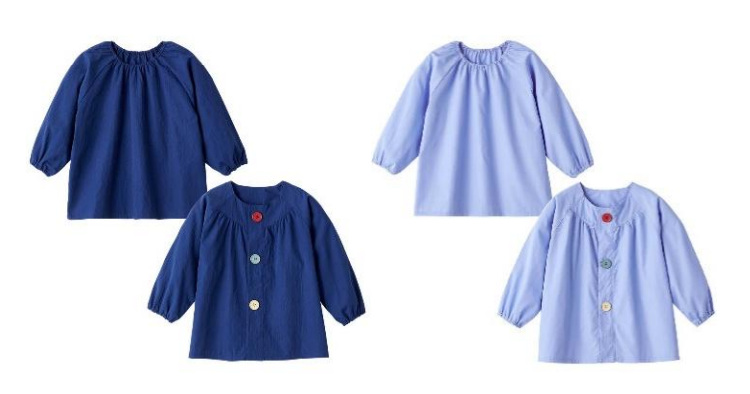 千趣会、「ベルメゾン」で一人で着脱しやすくボタン留めの練習に役立つ「タイプが選べる通園用スモック」を販売