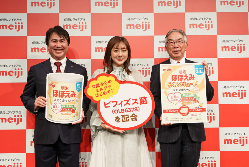 明治、ビフィズス菌配合の乳児用ミルク「明治ほほえみ」を発売、菊地亜美さんが新しい「明治ほほえみ」の魅力について学ぶ