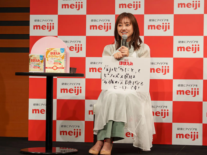 最後に、新商品「明治ほほえみ」にビフィズス菌が入ったことで、家族にとってどんな存在になると思うか、という質問に、「ビフィズス菌は、家族の笑顔を守るヒーロー」と回答。「子どもはちょっとしたことでお腹の調子が変わって、機嫌が悪くなってしまったりする。それに母親が気付いて、どう対処するかが大事だと思う。ビフィズス菌を摂ることでみんなが元気に育つということで、なくてはならない存在」と話していた。
