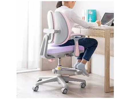 同品は、左右分割された背もたれが体の動きに合わせてフィットし、正しい姿勢を自然に保つ。学習時の猫背や前傾姿勢を防ぐことで集中力が高まり、長時間の学習や作業でも疲れにくくなる。健康的な姿勢習慣を身につけるサポートチェアとなっている。