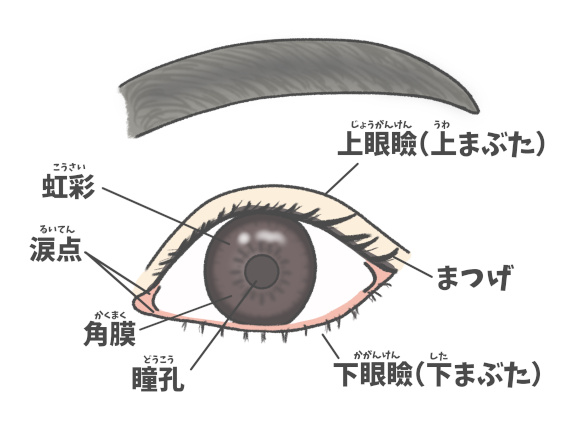 私たちの目は、眼球と視神経、まぶた、涙腺などから成り立っています。眼球は外側の角膜と強膜、中央の虹彩と毛球体と脈絡膜、内側の網膜によって形作られ、その内部に水晶体と硝子体があります。ほぼ球型をしており、赤ちゃんは直径約17mmしかありませんが、成人では約24mm、重さは約7.5gになるといわれています。この眼球に異物が侵入してくるのを防御しているのが「まぶた」です。