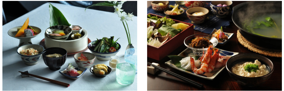 滞在スケジュールにあわせた食事は、良質な眠りに導くといわれる、栄養素を含む食材を盛り込んだ。朝は、睡眠を促すメラトニンを生成するトリプトファンやマグネシウムを含む「カツオ」や「昆布」を使った琉球朝食。夜には、上質なたんぱく質である「豆腐」や食物繊維豊富な「アーサ(あおさ)」を摂り入れ、消化に良く身体を温める「ゆし豆腐の鍋」を提供する。快適な睡眠へと導く栄養素を知ることで、いつもの暮らしへ繋げる(参考資料 KAKEN「日常生活における受光履歴とトリプトファンの食事摂取が睡眠に及ぼす影響」、文部科学省「日本食品標準成分表2015年版(七訂)」、「日本食品標準成分表(八訂)増補2023年」)。