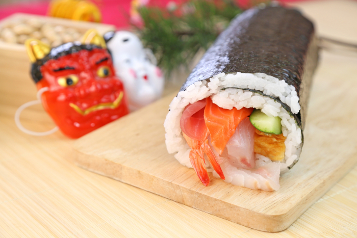 恵方巻の食べ方には諸説あるが、縁起が良いとされる方角「恵方」(今年は「南南東」)を向いて願い事をしながらかぶりつくという食べ方が知られている。