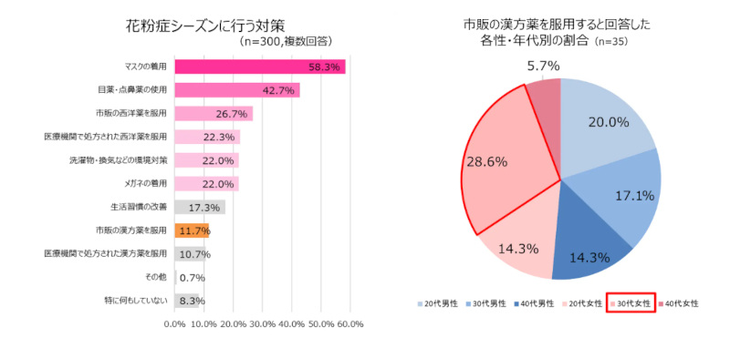 漢方薬を中心とした一般用医薬品と医療用医薬品を販売するクラシエ薬品は、20代~40代の花粉症に悩む男女300名を対象に“花粉症対策”に関する実態調査を実施した。