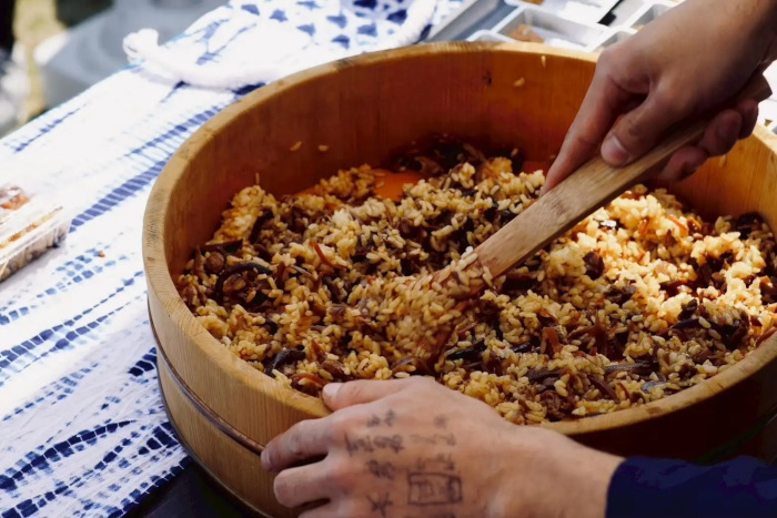 ひしお麹と米麹のスペシャルな味噌仕込みでは、ひしお麹と米麹を使って仕込む、旨味の強いスペシャルな味噌を味わえる。今回のワークショップでは国産大豆を使用し、家庭でも取り入れやすい方法で味噌を仕込む。発酵の仕組みや味噌づくりの考え方も、講師の解説とともに体験できる。