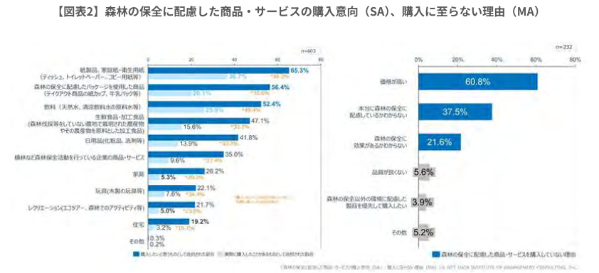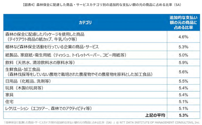 また、企業が森林保全を含む環境配慮の取り組みを持続的に進めるためには、消費者の評価や行動が重要となるすが、消費者意識や価格受容性を横断的に捉えた調査は限られている。