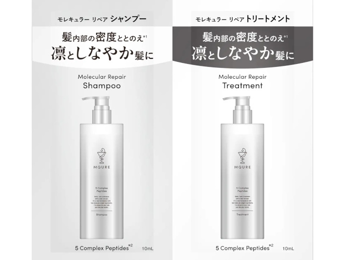 今回、「MQURE(エムキュア)」の新商品として「MQURE モレキュラーリペア シャンプー・トリートメント」を全国のマツモトキヨシグループ、ココカラファイングループの店舗(一部店舗を除く)と同社オンラインストアで11月1日から販売を開始する。