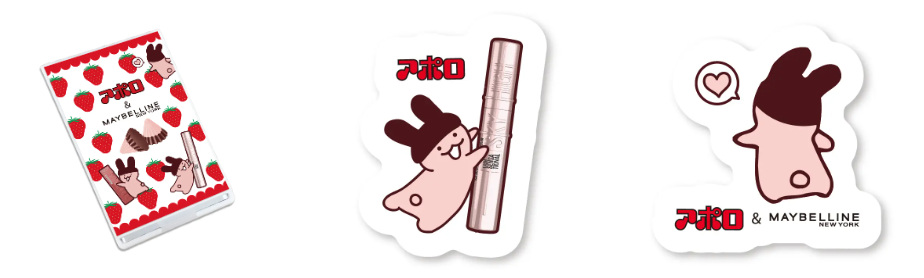 メイベリン×アポロチョコレートのメイクを店頭や公式ホームページで公開する。対象期間中に対象商品を購入すると、アポロチョコレートとコラボレーションしたオリジナルミラーやシールをプレゼントする(数量限定)。