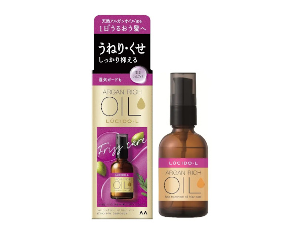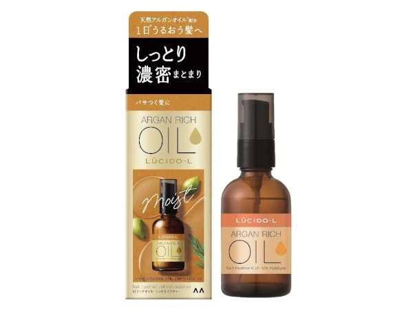 「ルシードエル オイルトリートメント #EXヘアオイル リッチモイスチャー」は、パサつきを防ぎ、しっとりまとまる髪へ導く。髪を乾燥から守る、モイスチャーコート処方になっている。アイロン等の熱から髪を守るヒートプロテクト処方だという。