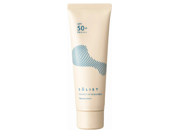 「ソリスト パーフェクトUVシールドミルク」は、するする伸びて肌にぴったりフィットするミルク状の日焼け止め。動きにフィットするフレキシブルフィット技術を採用した。伸縮ポリマー/(アクリレーツ/アクリル酸ステアリル/メタクリル酸ジメチコン)コポリマー(被膜形成剤)配合でスポーツシーンにも使える。