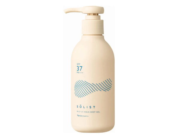 「ソリスト マイルドUV アクアキープジェル」は、みずみずしい潤い感とサラサラを両立するジェル状の日焼け止め。スキンケア処方を応用した。なめらかな潤い膜をつくるクインスシードエキス(保湿成分)・浸透型ヒアルロン酸/加水分解ヒアルロン酸(保湿成分)配合で潤いながら紫外線をカットする。日焼け止めの乾燥が気になる人にも使える。