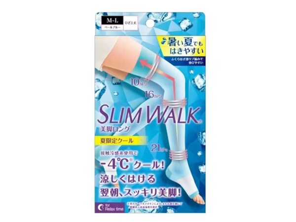 スリムウォークが夏期に発売しているクールタイプの着圧ソックスは、例年好評を得ている。昨年に発売した「美脚ロング 夏限定クール」は、一昨年発売のクールタイプ商品と比較して、前年比102%と売上が伸長した。「美脚ロング 夏限定クール」はスリムウォーク初の「シアー素材」を足もとに使用しており、ユーザーからは涼しさや快適な履き心地が高く評価されている。