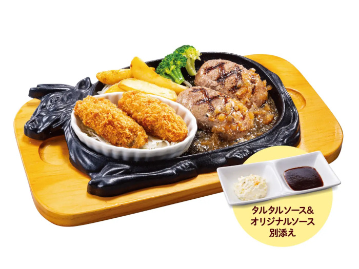 牡蠣フライ&手ごねハンバーグ150g:1375円
