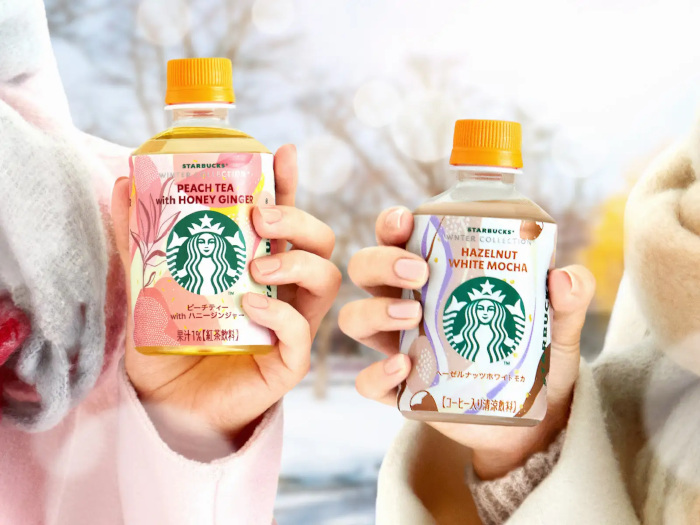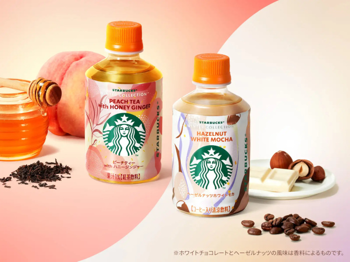 スターバックス・コーポレーションと、サントリー食品インターナショナルは、「スターバックス WINTER COLLECTION ピーチティー with ハニージンジャー」「同 ヘーゼルナッツホワイトモカ」を、全国のセブン-イレブン限定で10月21日から発売する。