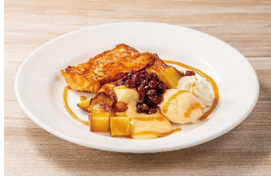 他にも、シンプルながらも、アイスや安納芋のペーストでさつまいもを充分に味わえる「蜜芋のモンブランパルフェ」や、食後のデザートにぴったりなサイズの「蜜芋のちょこっとパルフェ」などを用意した。さらに、デニーズアプリのダイヤモンド会員様限定デザートで大変人気だったデザートをおいも仕立てにした「あずきとカスタードのフレンチトースト」の全5品のラインアップで消費者のシーンに合わせて楽しめる。