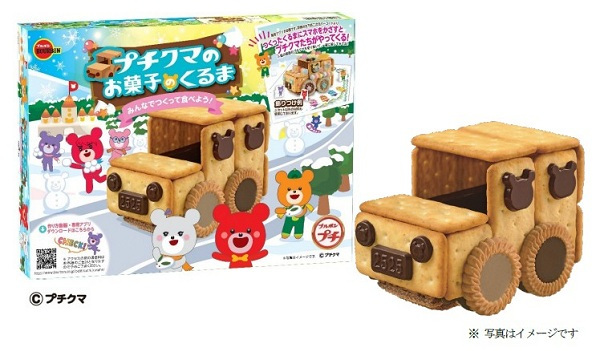ブルボン、ビスケットやクラッカーを溶かしたチョコレートで貼り合わせる組み立てキット「プチクマのお菓子のくるま」を発売