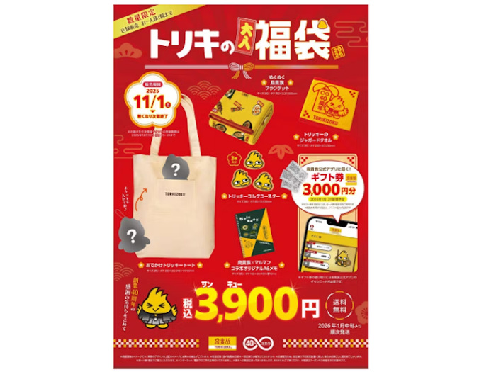 鳥貴族、創業40周年の感謝の気持ちを込めて福袋「トリキの福袋」3万セットを期間・数量限定発売