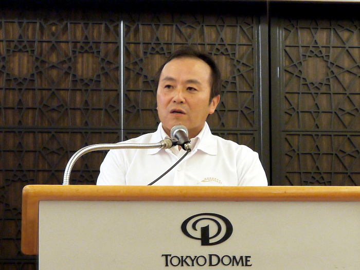 「福島県中央部に位置する大玉村は、昔から農業が盛んな土地で、安達太良山から広がるなだらかな扇状地の田園風景は村の宝といえる。人口は約9000人で、国勢調査では45年間人口が増え続けている。特に若い世代の移住者が多く、子育て支援に加えて、田園風景が広がる美しい景観もその一因となっている」と、大玉村長の押山利一氏が挨拶。「大玉村の米は以前からおいしいと定評があったが、これを科学的に証明するため、福島大学食農学類教授 農学博士の新田洋司氏に2019年から5年間研究してもらった。その結果、大玉村の米は、全国的にみても良食味米であることが証明された。そこで、このエビデンスを基に初のブランド米『あだたらの恵』を立ち上げ、ふるさと納税返礼品として提供開始する」と、「あだたらの恵」を発売するに至る経緯を述べた。
