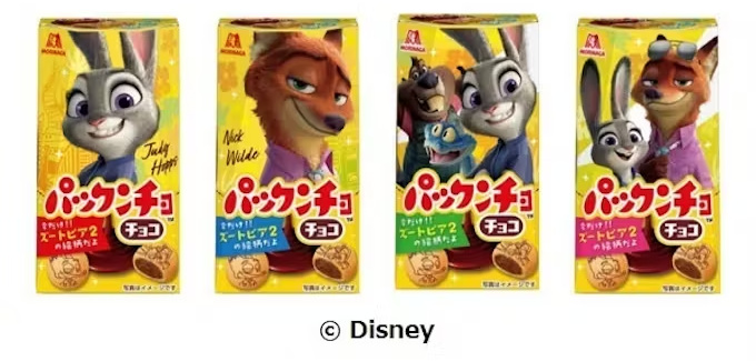 森永製菓、丸い一口サイズのビスケットにチョコクリームを入れた「パックンチョ」から「ズートピア2」期間限定デザインを発売