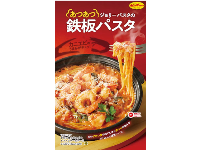 ジョリーパスタ、“鉄板パスタ”フェア第2弾として「“鉄板パスタ” ずわい蟹と赤エビのトマトクリームソース」を発売