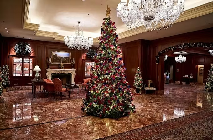 18世紀の英国貴族の邸宅を彷彿とさせる優雅な空間が広がる1階のロビーでは、ザ・リッツ・カールトン大阪が1年間で最も華やぐ時季、クリスマスシーズンにふさわしく11月14日~12月26日、約1000本の薔薇で飾られた高さ約3.5mの華やかなクリスマスツリーがお目見えし、紳士淑女の人々を迎える。華やかな雰囲気に包まれた館内で、心躍るフェスティブシーズンを過ごしてほしいとのこと。