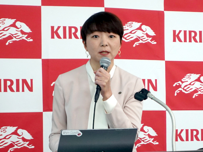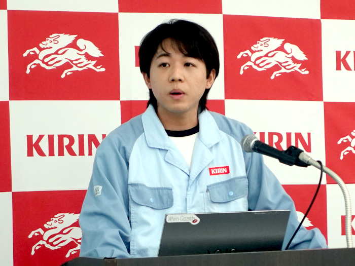 「飲料未来研究所では、廃棄するしかないコーヒーチェリーの果肉果皮に着目。キリン独自のブドウの果肉・果皮を乳酸菌と酵母で発酵させ香りの前駆体(香り成分に変化する前の物質)を増やす『ワインの香気増強技術』を、コーヒーチェリーに応用。飲料に新たな価値をもたらす発酵素材を開発し、『麒麟特製』の一部に採用した」と、キリンホールディングス R&D本部 飲料未来研究所 辻さや香氏が今回の発表の主旨について解説。「コーヒーチェリーとは、コーヒーノキに実る赤い実のこと。実の中にある種子がコーヒー豆の原料となり、実の約4割が果肉果皮となっている。廃棄される果肉果皮は世界で年間約2000万トン(キリン調べ)ともいわれている」と、私たちが普段コーヒーとして飲用するのは、コーヒーチェリーの種子の部分だけで、果肉果皮は廃棄されてしまっているのだという。「廃棄される果肉果皮はカフェインやポリフェノールなどの成分を多く含むため、生態系への影響、水質・土壌汚染などの環境負荷が懸念される」と、廃棄されるしかないコーヒーチェリーは環境問題を引き起こすのだと警鐘を鳴らす。「また、コーヒー価格の不安定性、農業インフラの未整備による生産性の低さ、コーヒーチェリーの廃棄に対する環境税負荷(コロンビア)、農家に利益が行き渡らない仕組みといったコーヒー農園の貧困問題の課題解決を目指すべく、有効活用の検討を開始した」と、研究の背景および目的について言及する。
