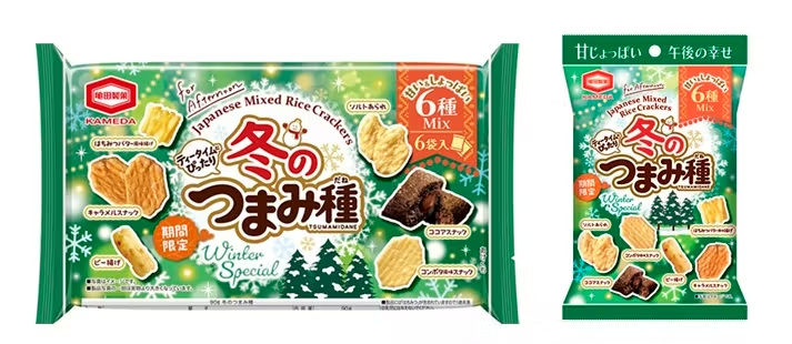 亀田製菓は、「90g 冬のつまみ種」(以下、「冬のつまみ種」)を全国のスーパーマーケットにて、「37g 冬のつまみ種」を全国のコンビニエンスストアで、11月17日から12月末までの期間限定で発売する。