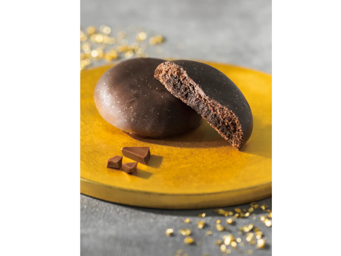 「リトル御朱印 ショコラ 2個入」は、石川県小松市で、昭和23年に創業し70年以上の歴史をもつ「加賀菓子処 御朱印」の代表商品であるチョコレート饅頭「御朱印」をゴディバオリジナルにアレンジした。カカオ分72%のダークチョコレートを使用した味わい深くねっとりとした食感の餡が特徴となっている。