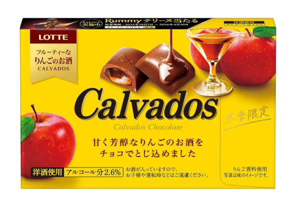 ロッテは、11月18日に、「ラミー」「バッカス」に代表されるロッテの洋酒チョコレートシリーズとして、「カルヴァドス」「洋酒薫る大人のスイーツ モンブラン」を冬季限定で発売する。「カルヴァドス」はファンの人々からの待望の声をうけ、6年ぶりの発売となる。昨年誕生の新シリーズ「洋酒薫る大人のスイーツ」からは、好評を得ていたモンブランが再登場。節約疲れなどを背景に「プチ贅沢」ニーズが増加している。癒しの手段として、夜にチョコやスイーツを楽しむ大人も増えている。チョコレートとお酒の絶妙なハーモニーで、優雅な気分と贅沢な時間を楽しんでほしい考え。