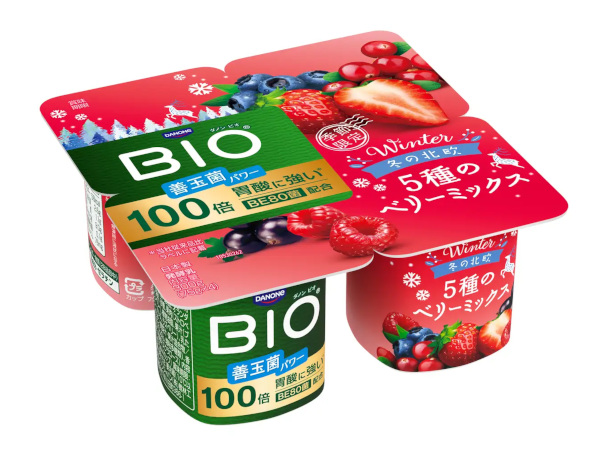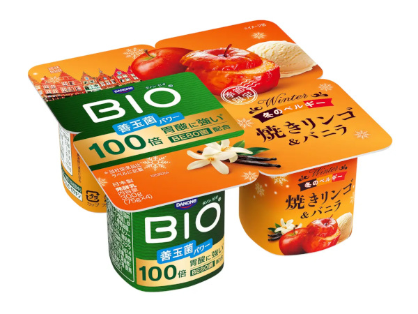 ダノンジャパンは、100倍胃酸に強く(同社従来品比。第三者機関において胃の環境を模した実験器具を用いて、BE80菌と同社のブルガリカス菌との胃液殺菌力に対する生存比較試験の結果)、生きて腸まで届くBE80菌を配合した「ダノン ビオ」ブランドの季節限定品である「世界旅行」シリーズ第4弾として、“冬の北欧”をテーマにした「5種のベリーミックス」と、“冬のベルギー”をテーマにした「焼きリンゴ&バニラ」を期間限定で同時発売する。
