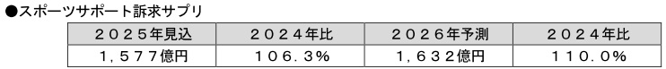 スポーツサポート訴求サプリは、プロテインやアミノ酸などを配合し、運動時のパフォーマンス向上や運動後の回復サポートなどスポーツシーン訴求商品を対象とする。なお、運動を伴わない痩身やダイエットをコンセプトとした商品や日常的な基礎栄養の摂取を目的としたプロテインは含まない。
