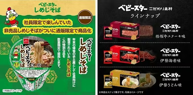 おやつカンパニー、通販限定商品として「ベビースターしめじそば」と「ベビースターこだわり素材」シリーズを発売