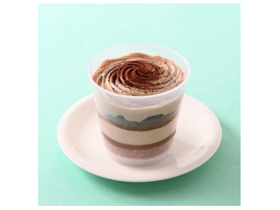 「植物生まれのチョコケーキ」は、豆乳を使用したココアスポンジに、アーモンドミルクなどの植物性由来の原料で作ったガナッシュを混ぜこんだホイップクリームを重ねたカップ仕立てのケーキ。スポンジの上に乗せたココアクランブルが食感のアクセントになっている。