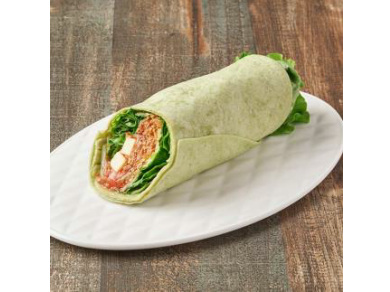 「植物生まれのチリミートのサラダラップ」は、大豆ミート入りのチリソースに、植物生まれのチーズと玄米、葉物野菜などを合わせたサラダラップ。ハラペーニョの辛味が効いたサルサソースをアクセントにした。