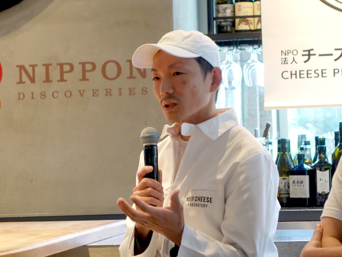 この後、「チーズ工房那須の森(栃木県・那須)」の山川将弘氏、GOOD CHEESE LABORATORY チーズクラフトマンの貞光信哉氏、ピッツァ・ダイニング「GOOD CHEESE GOOD PIZZA」のシェフ 梅村雅敏氏によるトークセッションが行われた。山川氏は、「その土地の草や水、土壌などで牛のミルクが違ってくる。そのミルクを使ったチーズも同様に、独自の見た目や風味、食感が生まれる」と、牛乳に違いがあるようにチーズにもその風土や文化などによって違いが生まれるのだと説く。
