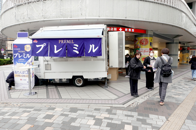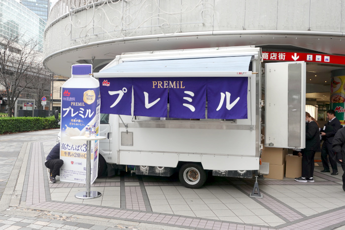 内容:プレミル200ml(常温保存可能品)サンプリングとキッチンカーで「シリアル+プレミル」のセット提供