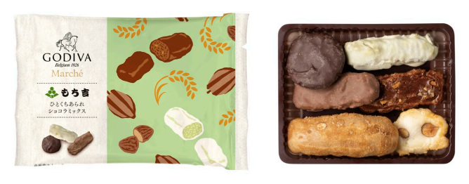 ゴディバ、福岡県直方市の米菓・和菓子店「もち吉」とのコラボ第3弾で「ひとくちあられ ショコラミックス」を数量限定販売