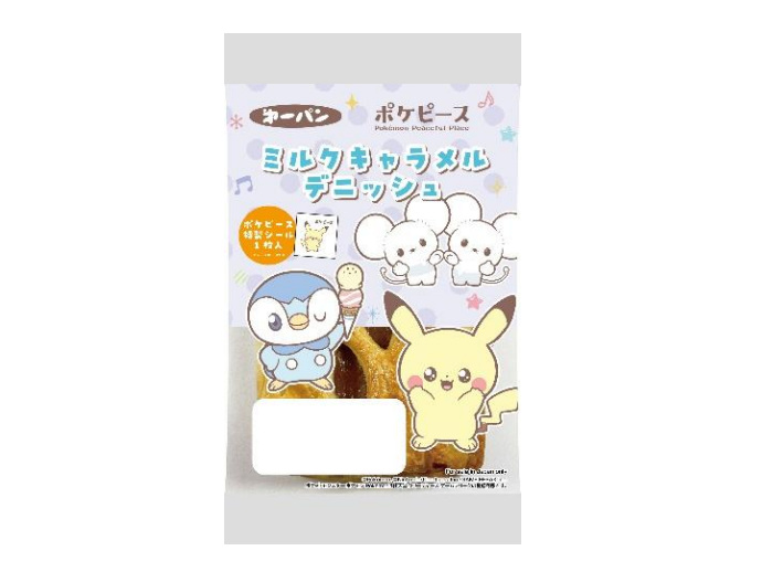 「ポケピースミルクキャラメルデニッシュ」は、ミルクキャラメルクリームをデニッシュ生地で包んだ。ポケピース特製シール1枚入り。