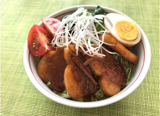 四国は、川崎医療福祉大学とのコラボメニュー「簡単!豚のトマトケチャップ角煮丼」(食塩相当量1.9g/ナトリウム768mg/カリウム921mg)。川崎医療福祉大学の学生は、レシピのポイントについて、「味のしっかりとした豚の角煮も、カリウムを多く含む野菜を一緒に摂ることで食事のナトカリ比を下げることができる。また、トマトケチャップを使用することで、短時間でも肉が柔らかく仕上がり、子どもから大人まで食べやすい味付けとなっている」とコメントしている。