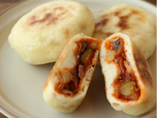 関東甲信越は、長野県の郷土料理「おやき」をアレンジした「カラダ想いべジおやき」(食塩相当量0.7g/ナトリウム289mg/カリウム358mg)。「おやき」を洋風にアレンジし、野菜たっぷりのラタトゥイユ風の餡を包んだ。さらに、血圧コントロールにも役立つ食物繊維がとれるしめじも加えている。焼きケチャップのコクとふわっとした生地が特徴。冷凍保存もでき、朝食やおやつにも食べられる健康と地域の魅力を両立した一品となっている。