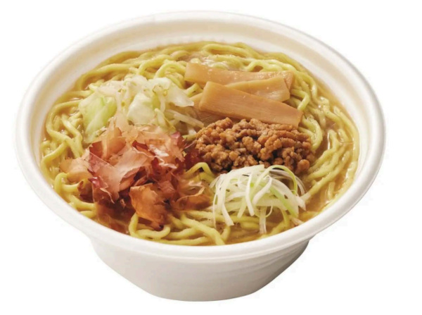 「マルニ味噌らーめん監修 大盛みそラーメン」は、マルニ麦麹生味噌を使用したスープにちぢれ麺を合わせた。具材には、白髪ネギ、もやし、キャベツ、メンマ、肉そぼろ、花かつおを盛り付けた。麺量は300gと、食べ応えのある大盛り仕立てにした。