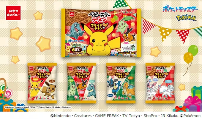 おやつカンパニー、ポケモンデザインの「ベビースターラーメン(フライドチキン味)6袋入」を期間限定発売