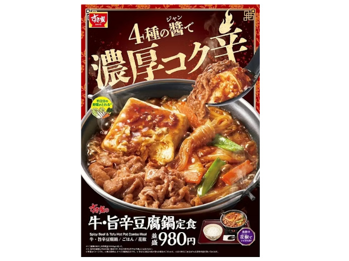 すき家、4種の醤(ジャン)で濃厚コク辛な鍋メニュー第2弾「牛・旨辛豆腐鍋定食」を発売