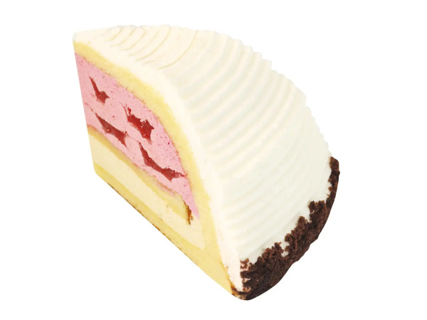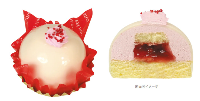 「苺のボンブショート」は、軽いタイプのカスタードクリームと苺果肉入りソース、苺クリームをスポンジでサンドし、練乳入りシャンテリークリームで仕上げた。苺の甘酸っぱさが楽しめるドーム形の華やかなケーキとなっている。