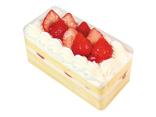 「苺たっぷりバトンケーキ」は、スポンジに軽いタイプのカスタードクリーム、苺果肉入りソースを重ね、苺をふんだんに飾った。切り分けタイプのバトンケーキとなっている。