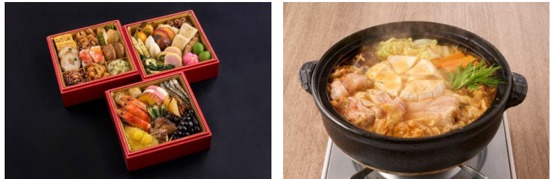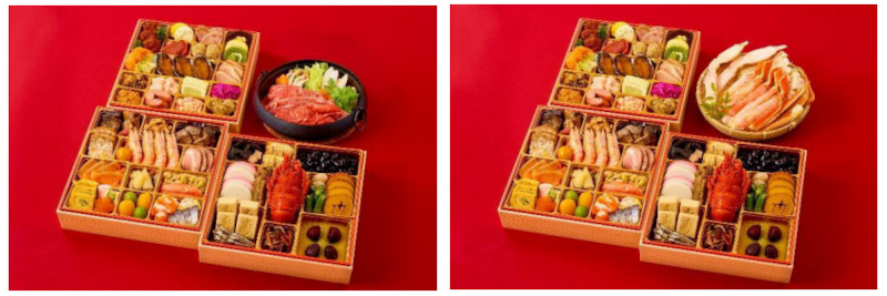「背徳おせち:彩豊楽+丸ごとチーズにおぼれるキムチ鍋」は、正月の伝統食材をはじめ、肉料理や焼魚、きんとんなど和の甘味まで、バラエティ豊かに盛り込んだ。さらに、冬にうれしい「丸ごとチーズにおぼれるキムチ鍋」をセットにした。コクのあるチーズとピリ辛キムチの絶妙なハーモニーが、体も心も温めてくれる。おせちを囲んだ後の団らん時間に、家族みんなで鍋を楽しめる“二度おいしい”正月限定セットになっている。
